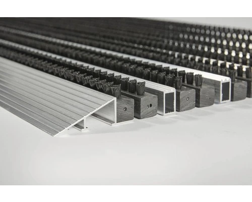 Hoogwaardige borstelmat met een aluminium profiel. De kunststof borstels hebben een hoog reinigingseffect. De mat ligt zeer stabiel is is anti slip, ideaal voor buiten.
